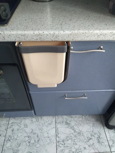- It can be easily hang on the kitchen door or cabinet door,easy to mount and it stores nicely.This garbage container is easy to clean up and waterproof.